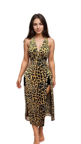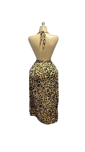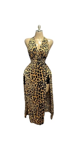 Generic - MANIKAN Women's Dress Leopard Print Halter Dress V-Neck, Sleeveless Summer Cocktail Party Dress