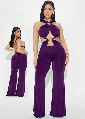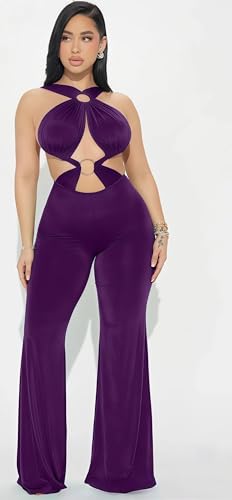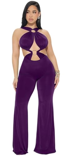 Generic - MANIKAN women's JumpSuit Bodycon lingerie one-piece design Sleeveless Halter Neck Cut-Out Flared Leg made of soft and flexible Lycra Fabric