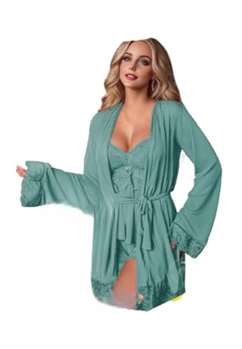 Generic - MANIKAN Women's Lace-Trimmed Robe Long Bell Sleeve Lingerie