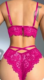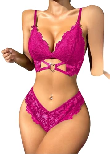 Generic - MANIKAN Women's Lingerie Lycra Set, Push-Up Bralette and High-Cut Panty, Heart Charm Detail, Hot Pink
