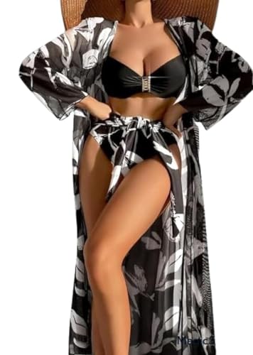Generic - طقم ملابس داخلية من 3 قطع مع روب منقوش بالزهور للنساء من مانيكان
