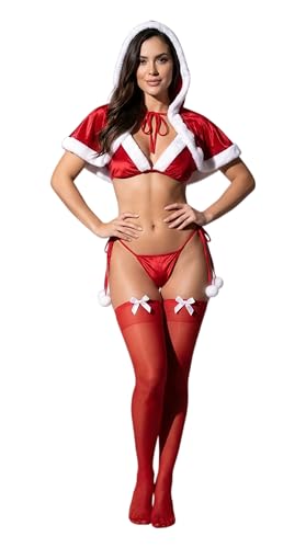 Generic - MANIKAN Women's Santa Costume Cape with Bikini Set, Red Velvet with White Fur Trim, Christmas Holiday Lingerie