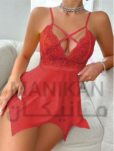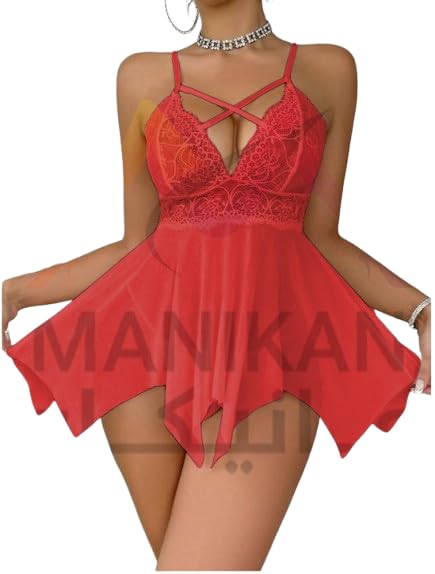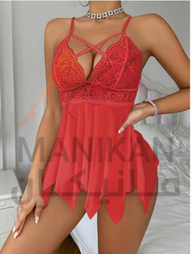 Generic - MANIKAN Women's Sexy Lingerie Lace Babydoll Mesh Nightwear with Criss-Cross Straps Handkerchief Hem made of Chiffon Transparent Fabric