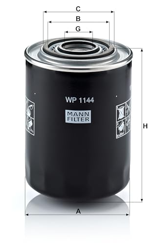 - MANN-FILTER Oil Filter WP 1144 / Dimensions (mm): H = 145 ; A = 108 ; B = 63 ; C = 72 / Premium Filter in original equipment quality