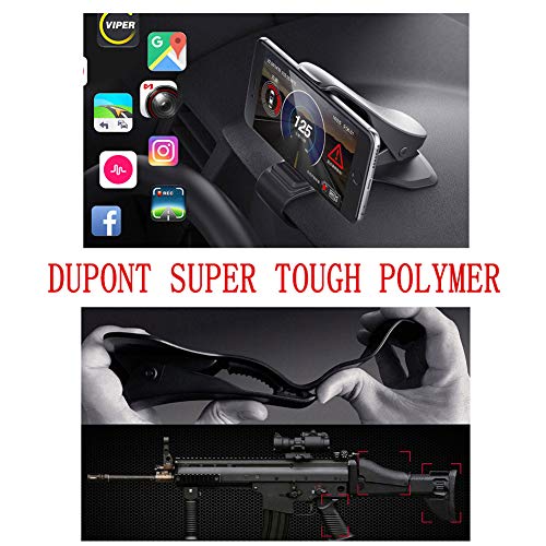 - Safe and Stable: Curved rubber cushion on the base help it to be firmly settled on the dashboard without slide. Anti-slip silicone steps dDesign inside the clamps, steadily hold your phone.