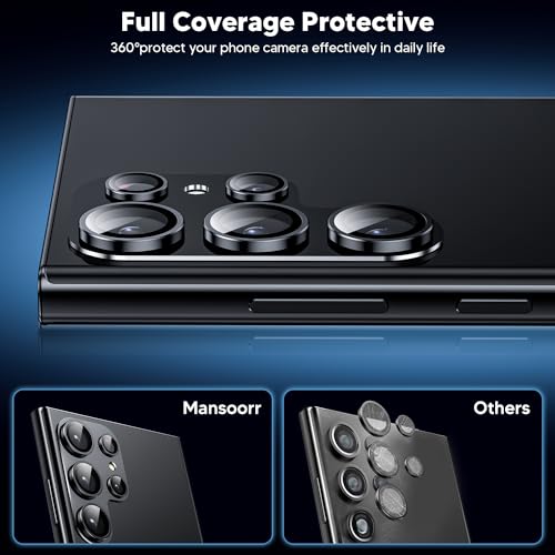 - Powerful Adsorption & Original Match: Mansoorr for s24 ultra camera lens protector use upgraded nano-waterproof adhesive layer with reinforced glue, no easily to fall off. Lightweight 1:1 slim thin matte alloy original design, reflects fascinatingly makes it personalized and decorated accessories. Perfectly matches your phone while provide fully protection.