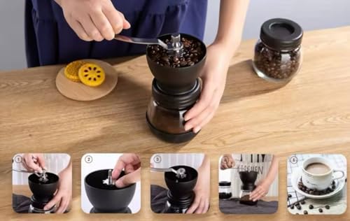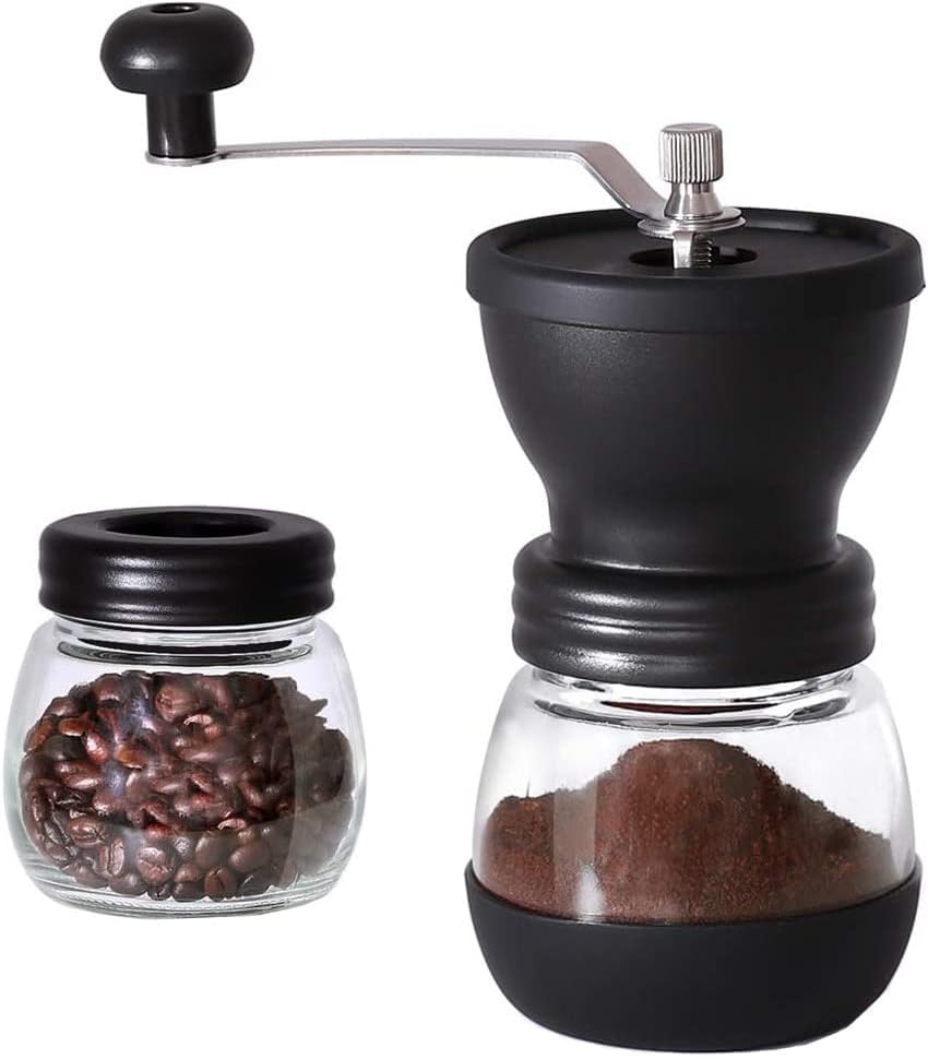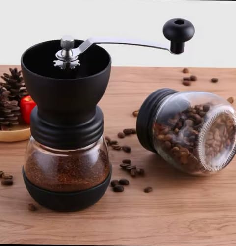 Generic - مطحنة بن يدوية – مطحنة حبوب يدوية بوعاء زجاج داخلي وهيكل صلب – تصميم عملي وجودة عالية لعشاق القهوة والمزاج الرايق