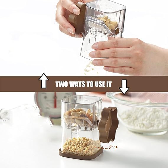 - * يمنحك تصميم ذراع التدوير اليدوي تحكمًا كاملاً في الملمس، من الخشن إلى الدقيق، بدون كهرباء أو ضوضاء أو كابلات فوضى في مطبخك.