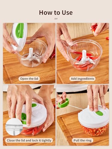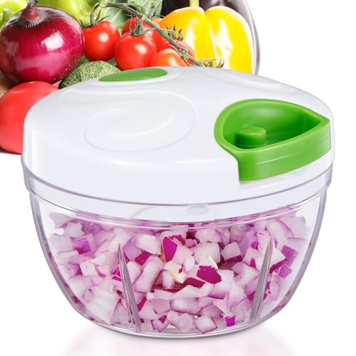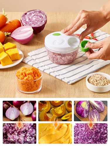 Yabano - Manual Onion Chopper with Pulley, 500 ml, Hand Pull Cord, Garlic Mincer, Portable Mini Chopper for Vegetables, Fruits, Nuts and Herbs, Easy to Clean and BPA-Free