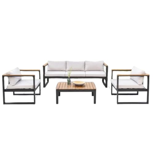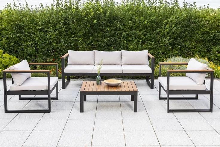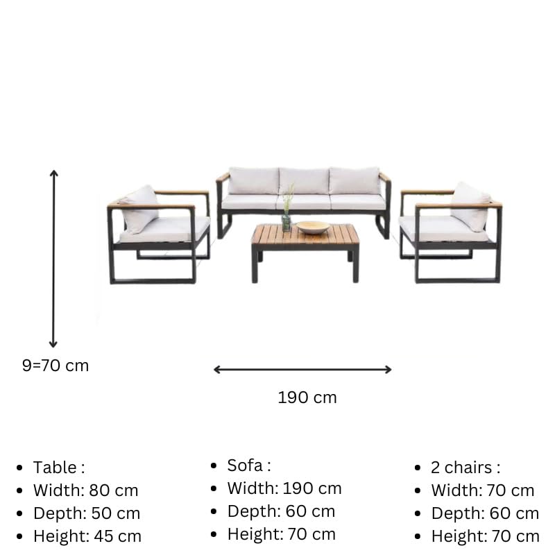 Manzzeli - Manzzeli Griffin Garden Set - Table: 50W x 45D x 80H, Sofa: 60W x 70D x 190H, Chairs: 60W x 70D x 70H - Black, Transitional Style - Outdoor Furniture Set