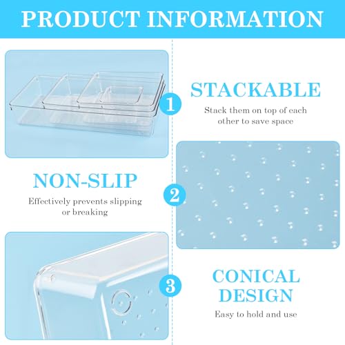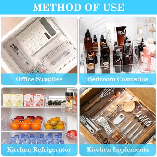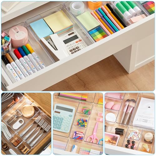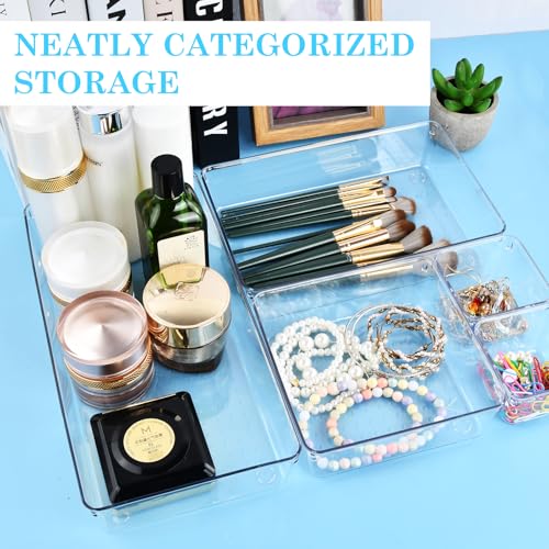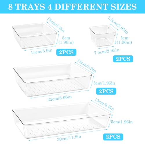 Mapille - 8 Pieces Clear Drawer Organiser, Make Up Bathroom Drawer Organiser with 4 Sizes for Kitchen, Bathroom, Dressing Table, Desk