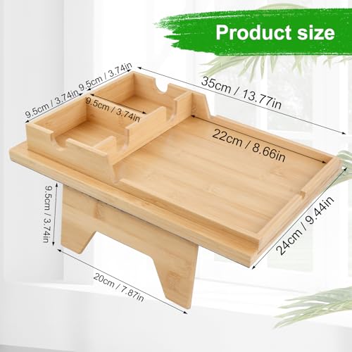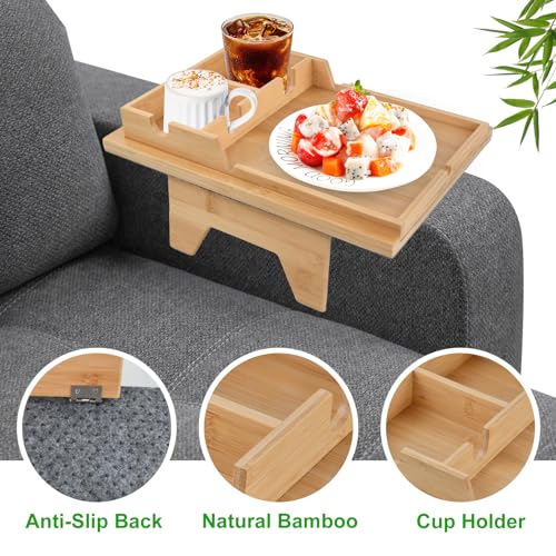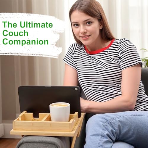 Mapille - صينية اريكة من الخيزران من مابيل مع حامل اكواب وحامل رف، طاولة بمشبك مسند ذراع قابل للتعديل 2 في 1 للاريكة 10-20 سم