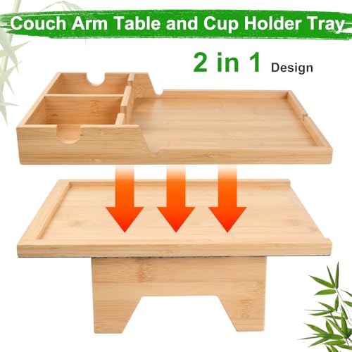 - تصميم 2 في 1 - قم بتحويل هذه الصينية بسهولة إلى رفين منفصلين عن طريق تحريك الجزء العلوي - مثالية لتنظيم أغراضك على مسند ذراع الأريكة.