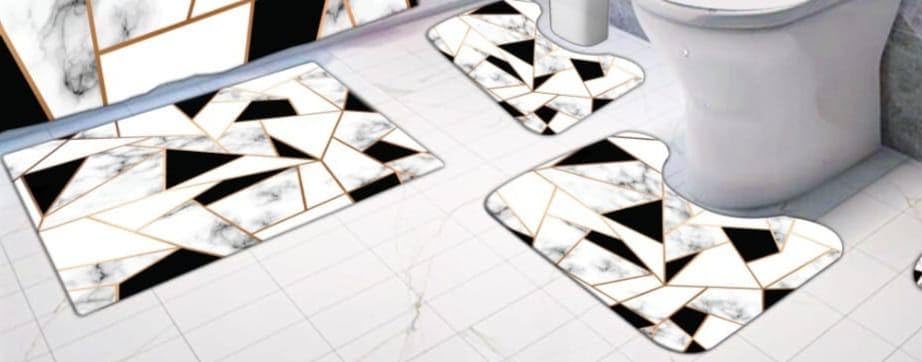 Generic - Marble Bathroom Rug Set, 3 Piece Geometric Design, Black and White Design, Modern Style
