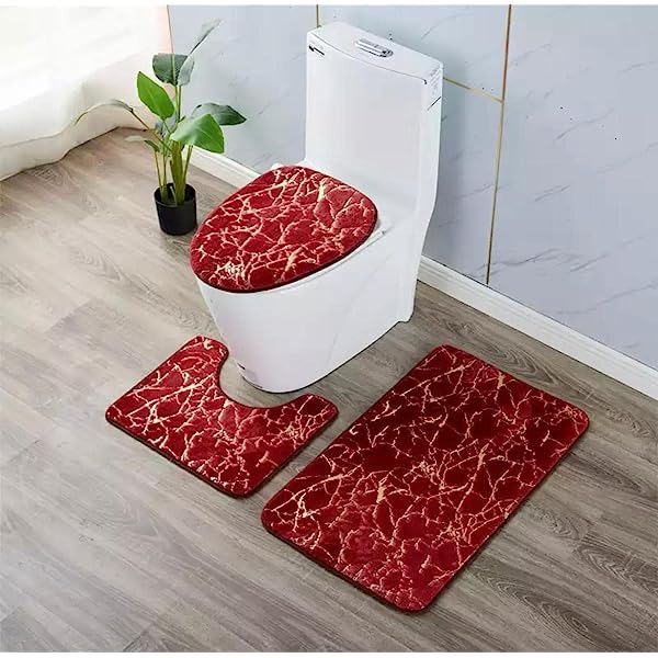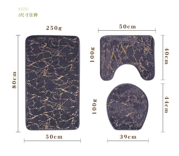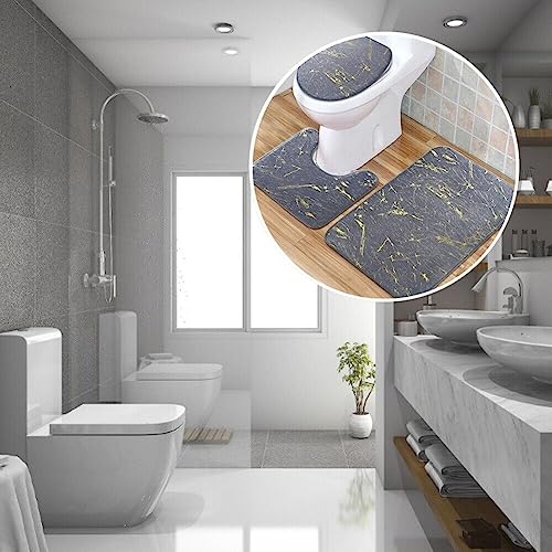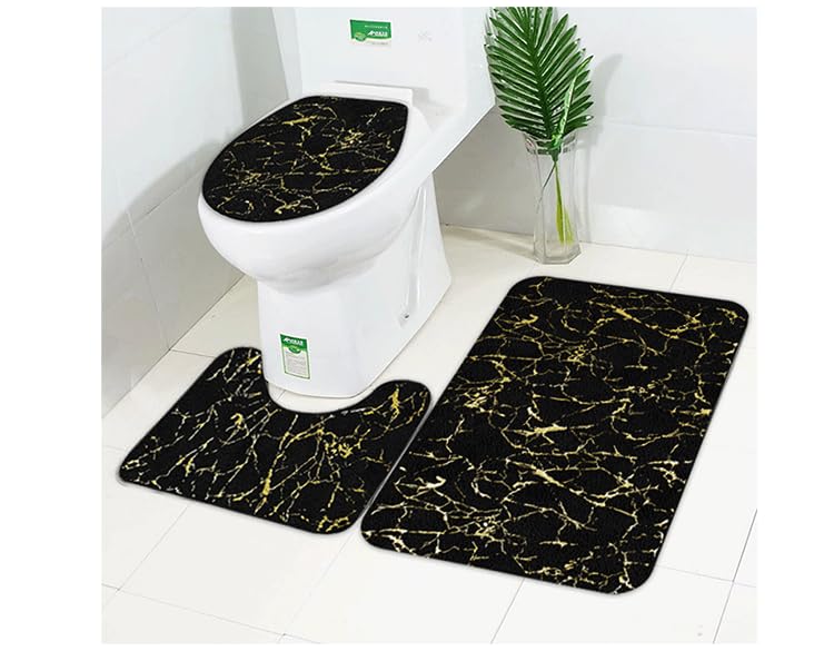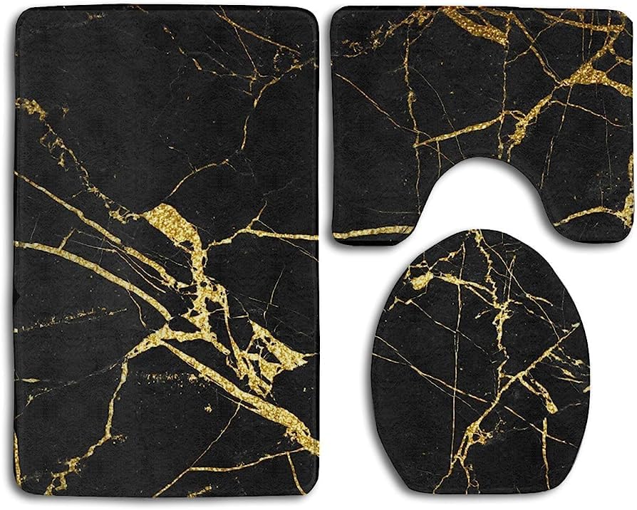 Generic - Marble Texture Bathroom 3-Piece Mat Sets Pedestal Mat+Lid Toilet Cover+Bath Mat Doormat Non-Slip Rug (Black)