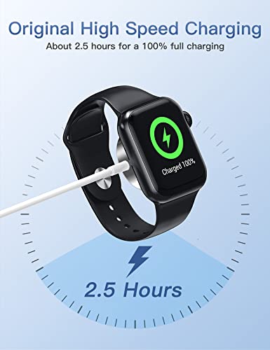 - 【Charge the iWatch in 2.5 hours】High speed charging. The fast watch charger that solves the biggest problem to find the "Sweet Spot/Hot/Slowly" that traditional wireless charging of the watch always have. After the watch is fully charged, it automatically stops charging and the watch is protected, it will not be damaged by overcharging. (Note: The USB port of the watch charger can be connected to all USB enabled devices.