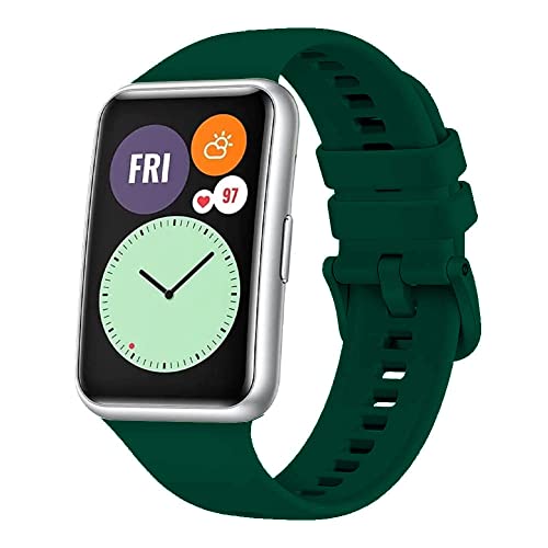 MARGOUN - MARGOUN Compatible with HUAWEI WATCH FIT 2 Strap, Adjustable Silicone Sport Watch Bands Replacement Wristband Men Women (dark green), 18CM, Silicone