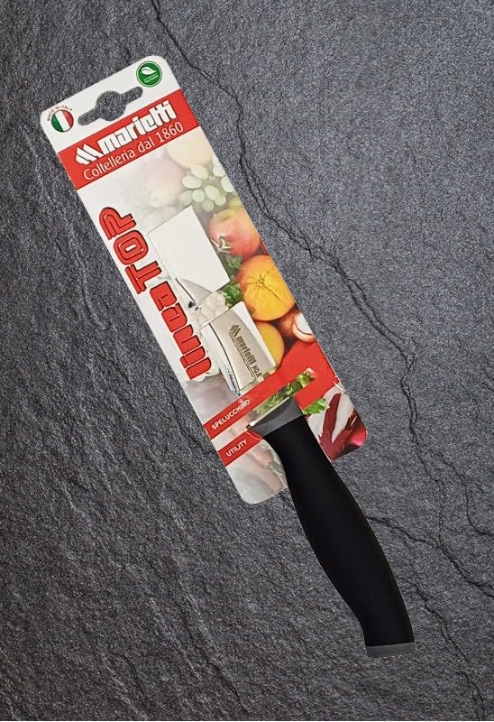 Marietti - سكين تقشير احترافي منحني من ماريتي - شفرة تقشير من الستانلس ستيل 7.5 سم - مقبض مريح غير قابل للانزلاق - مثالي للتقشير والتشذيب والتزيين - اسود/رمادي