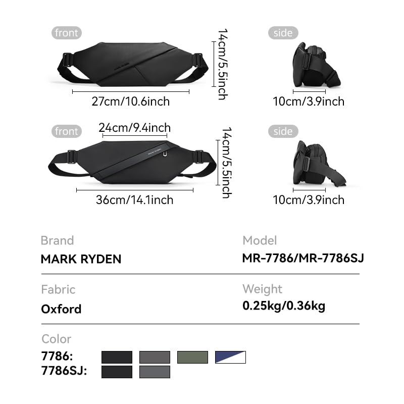MARK RYDEN - مارك رايدن شنطة كروس 7786 - مقاومة للماء، جيب مضاد للسرقة، سحابات واي كيه كيه، متعددة الاقسام، خفيفة الوزن وانيقة للسفر والاستخدام اليومي، ازرق وابيض