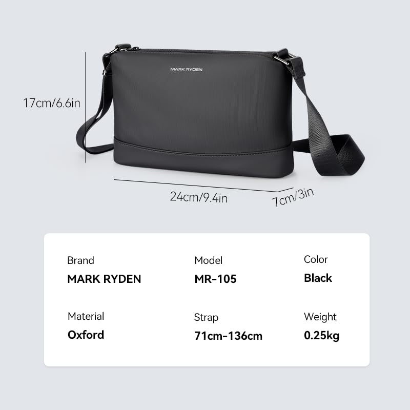 MARK RYDEN - Mark Ryden MR 105 Crossbody Chest Bag for Men – Lightweight, Water-Resistant Sling Bag for Travel, Cycling, and Daily Use – Oxford Fabric, YKK Zipper, Anti-Theft Pocket – Light Travel Series