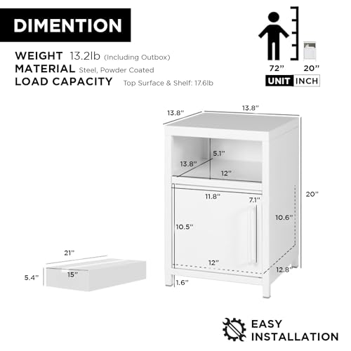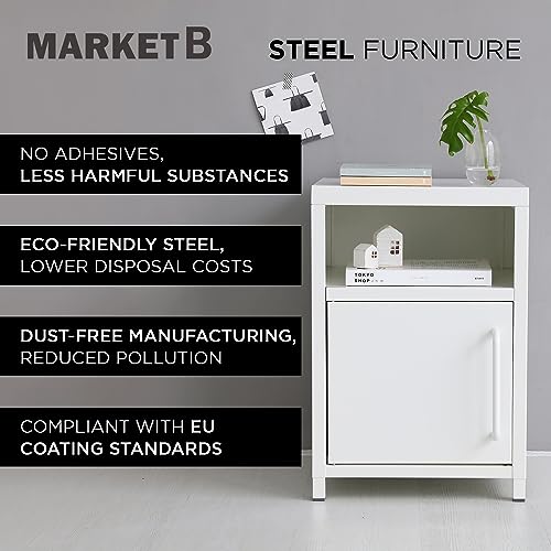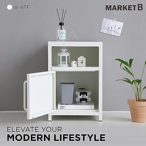 MARKETB - 1 Door Steel Storage Cabinet with Shelf, Multipurpose Organizer, 13.8 x 13.8 x 20.1 Inches, Assembly Required, for Office, Home, Living Room, Bedroom and Entryway - White