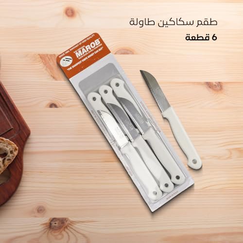 MAROB - طقم سكاكين طاولة 6 قطع بيد من ماروب، لون أبيض