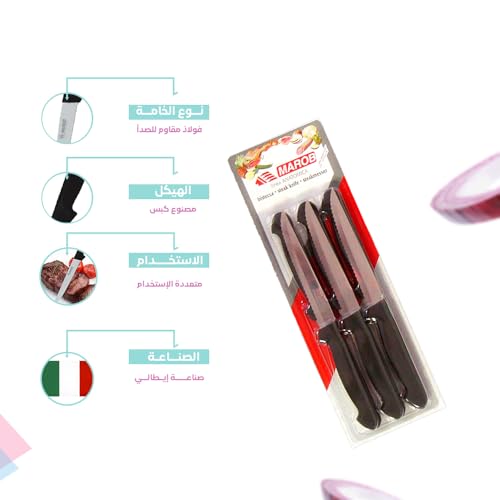 Marietti - MAROB Steak Knives with Wooden Handle 6-Pieces Set, Black