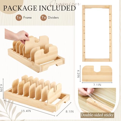 - Size: boasting a 15.3 x 8 x 4.7 inches size, our pan lid organizer incorporates a semi-circular groove design for convenient handling; With 7 partitions and 13 slots, configure the removable partitions to suit pots and pans of various depths