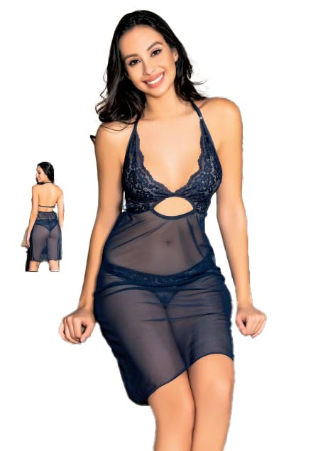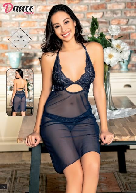 Marti Homewear & Lingerie - مارتي هوم وير اند لانجري 4149 فستان نوم دانتيل شفاف مع بانتي مطابق للنساء