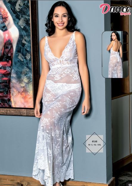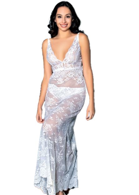 Marti Homewear & Lingerie - Marti Homewear & Lingerie 4156 Elegant Long Lace Nightdress with Deep V-Neck and Matching Panty for a Romantic, Feminine Look For Woman's