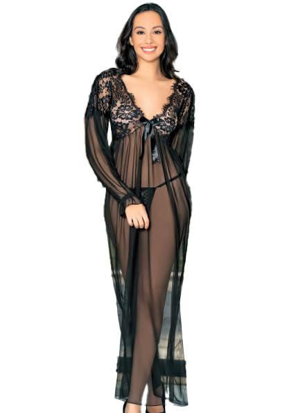 Marti Homewear & Lingerie - Marti Homewear & Lingerie 4166 Elegant Long Sheer Chiffon Nightdress with Lace Bodice & Long Sleeves with Matching Panty For Woman's