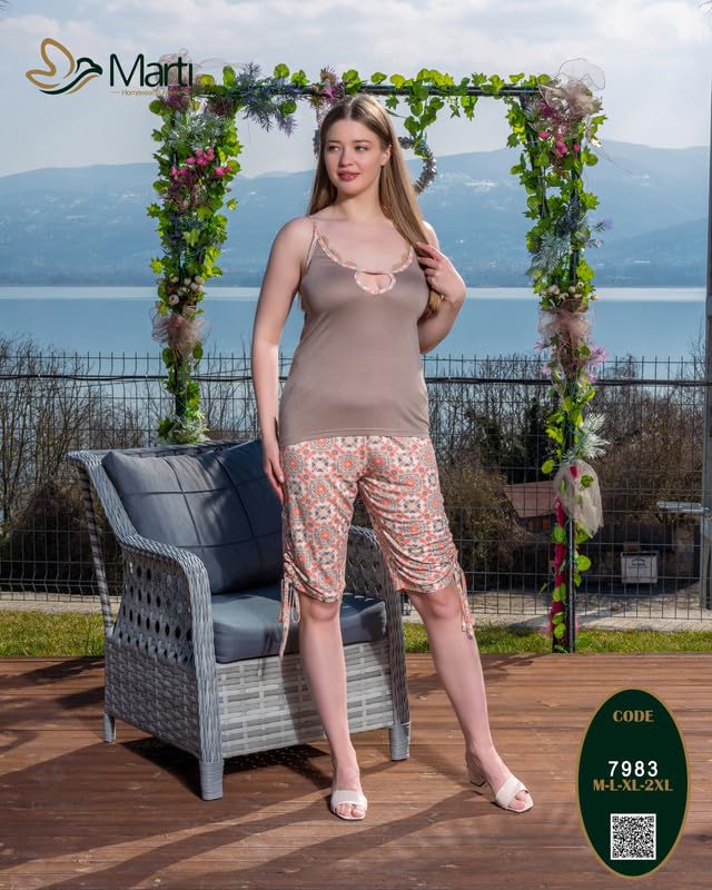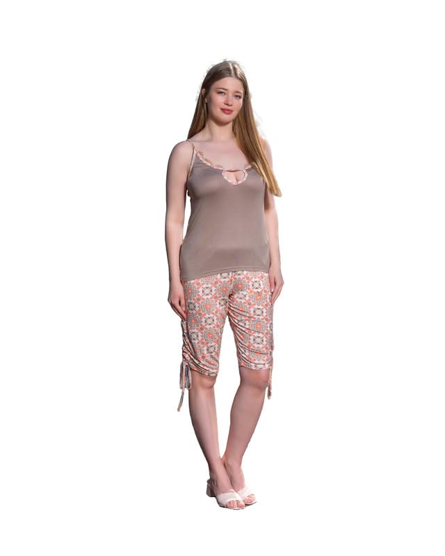 Marti Homewear & Lingerie - Marti Homewear & Lingerie 7983 Summer Pajama Set Sleeveless Top & Adjustable Printed Capri Shorts For Woman's