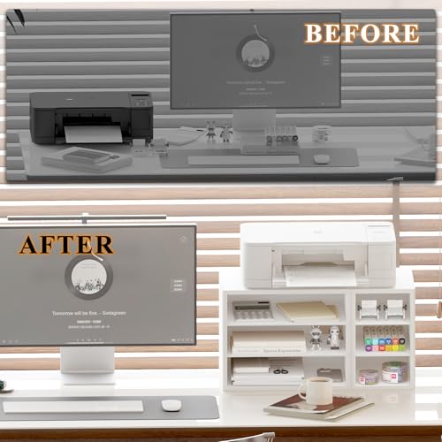 - 【قوي ومتين】حامل الطابعة مصنوع من لوح عالي الجودة، مقاوم للاهتراء، قوي ومتين. 8 وسادات مضادة للانزلاق تضمن حامل الطابعة أكثر استقرارًا وتجنب الانزلاق، كما يمكن أن تحمي سطح المكتب من الخدوش.
