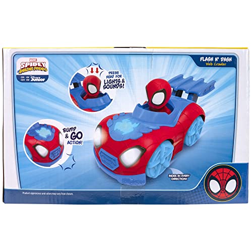 - Look out: here comes Spidey and his motorized Flash ‘N’ Dash Web Crawler.