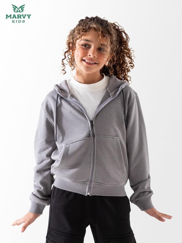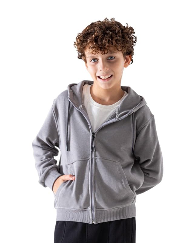 MARVY KIDS - Zip-Up Hoodie for Girls & Boys ? Soft Cotton Fleece Sweatshirt with Front Pockets | Comfortable Everyday Zip Jacket Grey 12 years