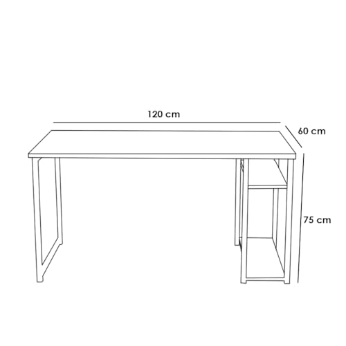MASA FURNITURE - Computer Desk with Storage Shelves, 120 cm Length, Black Metal Frame (Brown)