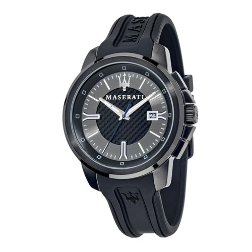 Maserati - ساعة جلد دائرية انالوج بعقارب ومينا مختلفة اللون للرجال من مازيراتي R8851123004 - اسود