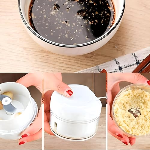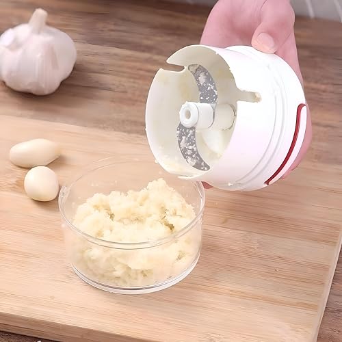 - This manual garlic mincer is crafted from durable, food-safe plastic, offering a reliable and mess-free way to crush garlic, onions, herbs, and other vegetables without electricity — perfect for kitchens where quiet, efficient prep is valued.