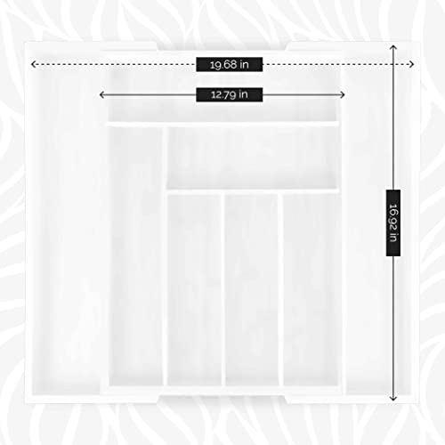 - Eight compartment drawer organizer with that has generous capacity for flatware storage