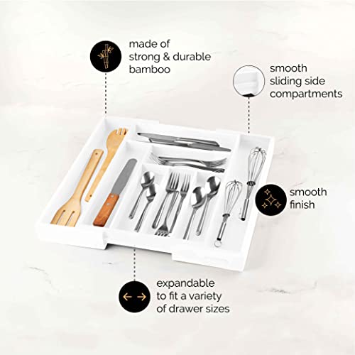 Masirs - Masirs Bamboo Kitchen Drawer Organizer - Easily Adjust the Wooden Tray Width to Drawer Size, Deep Enough to Fit Entire Drawer and Accommodates Different Kitchen Utensil and Cutlery Sizes.