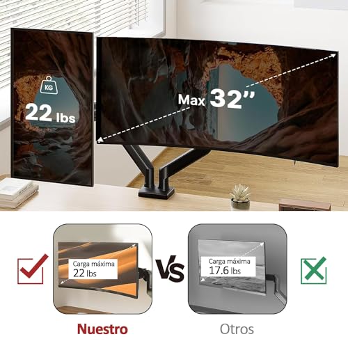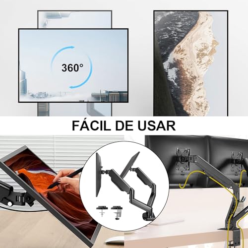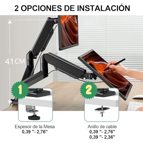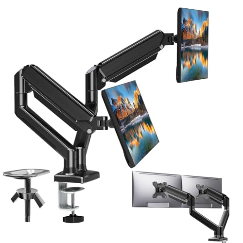 - 🌈 Dual Monitor Stand, Sturdy monitor arms with built-in cable control are specialized in helping hide cables. A single monitor arm frees up more than 80% of desk space, while creating a more comfortable working environment compared to large monitor arms with pedestal.