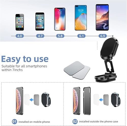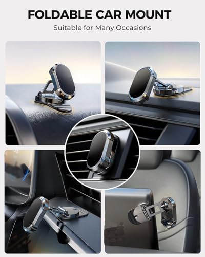 - حامل هاتف مغناطيسي قابل للطي: حامل هاتف مغناطيسي صغير وقابل للطي، يمكن تعديل الارتفاع والزاوية حسب الرغبة وطيه لسهولة التخزين. حامل موبايل للسيارة مع جاذبية مغناطيسية أقوى 60 مرة ومضاد للاهتزاز ثابت.