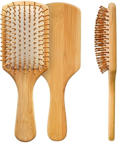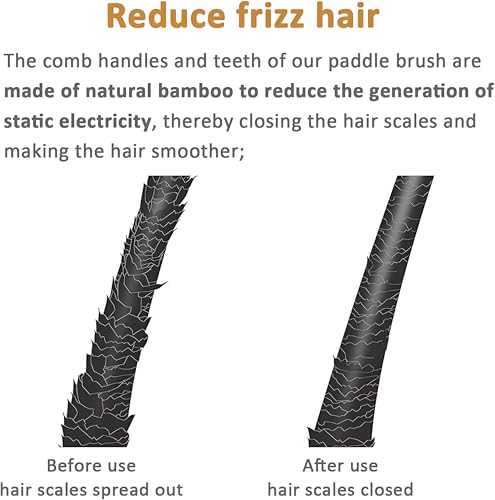 - Unlike plastic brushes that generate electrical charges and cause saw hair, the natural bamboo material is naturally resistant to static charge, which helps to even hair flakes, reduce tangles, and distributes natural oils from root to tip to boost shine and manageability.