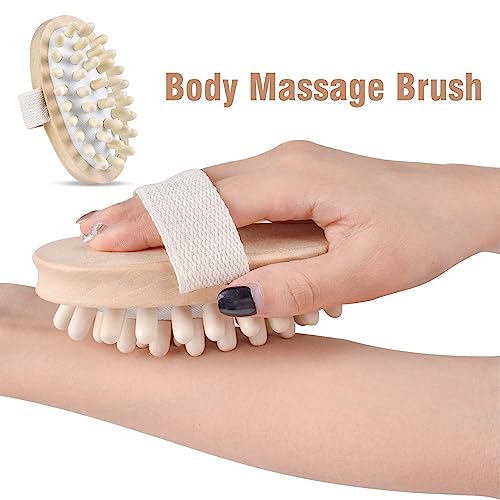 LAGAHS - فرشاة تدليك، فرشاة الجسم، مدلك السيلوليت من الخشب الطبيعي، فرشاة للجسم بالفرشاة الجافة، مدلك التصريف اللمفاوي