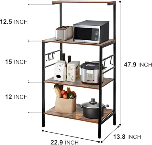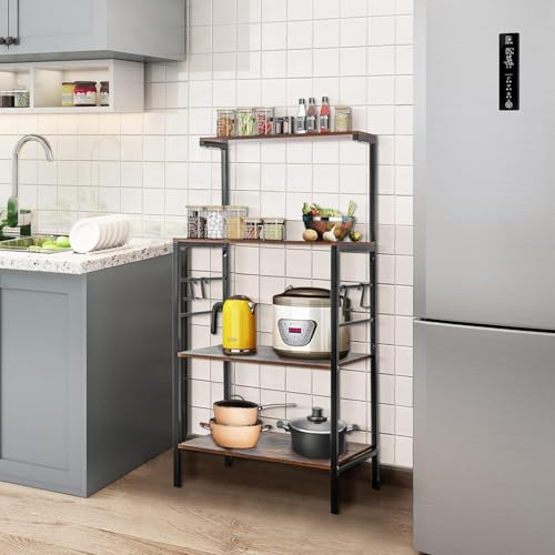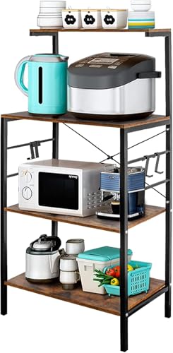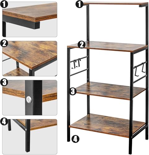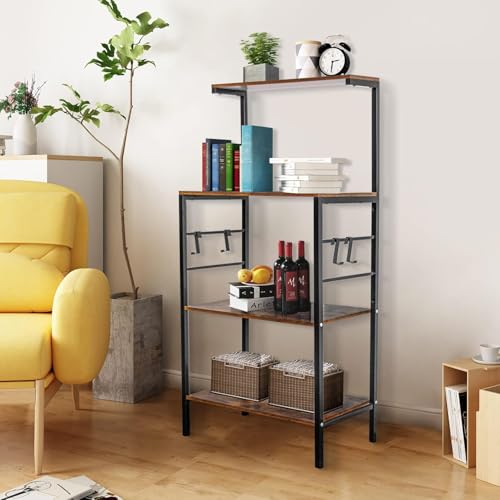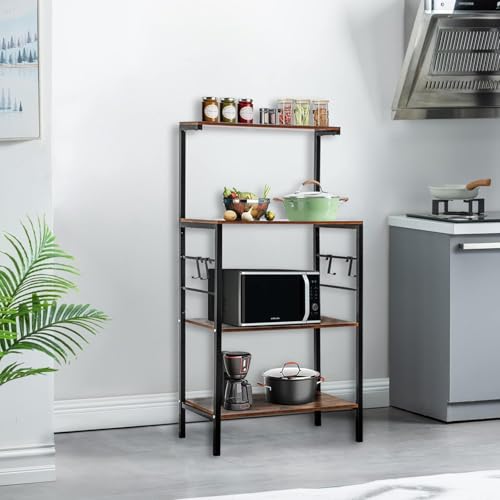 Generic - رف خبازين للمطبخ من MASTEEL KITCHEN، رف تخزين للمطبخ من 4 طبقات، عربة ميكروويف للقهوة والميكروويف مع 4 خطافات، رفوف للخبازين للمطابخ مع مساحة تخزين (بني ريفي)