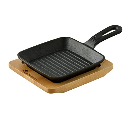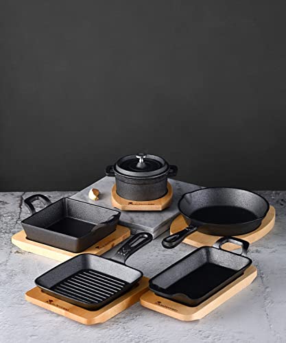 MasterPro - MASTERPRO COOK AND SHARE CAST IRON GRILL PAN WITH WOODEN UNDER LINER 13.7X22 CM, BLACK COLOR, BGMP3808
