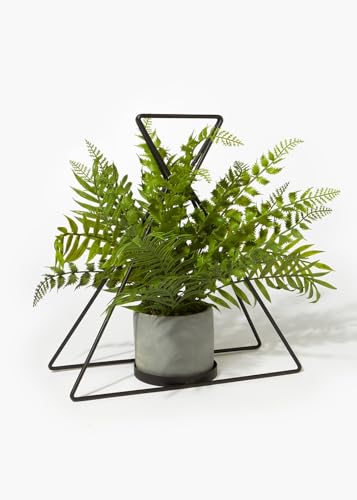 Matalan - Matalan Fern Plant Cement Pot with Metal Rack, 32 cm x 11.5 cm x 29.5 cm Size, Green/Black