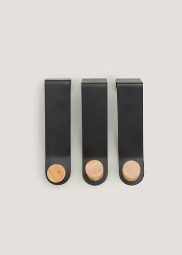 Matalan - Matalan Metal and Wood Hooks 3-Pieces, 12 cm x 3 cm x 3 cm Size, Black
