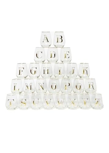 Matalan - Matalan X Alphabet Print Glass, 12.5 cm Height x 7 cm Diameter Size, Clear/Gold