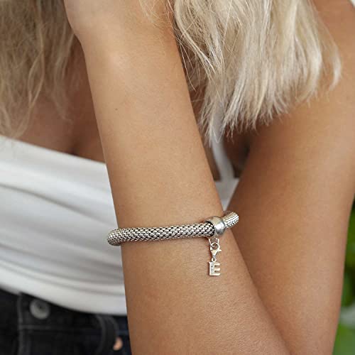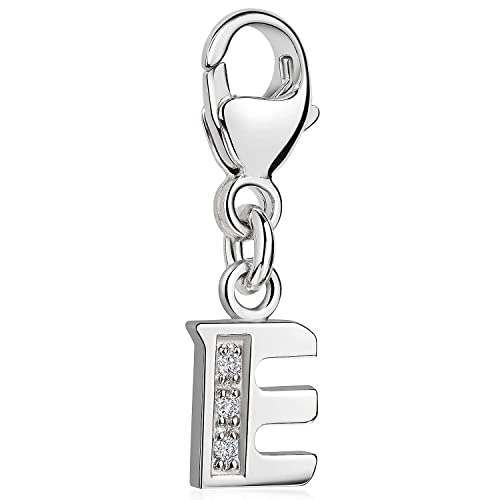 MATERIA by Matthias Wagner - دلاية حروف ابجدية فضة ستيرلينج 925 بتصميم حرف E مع 3 احجار زركونيا للسوار والسلسلة من ماتيريا، #C55
